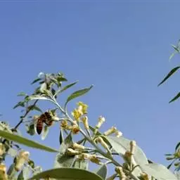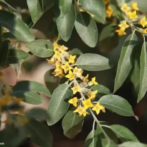 沙枣树 沙枣为落叶乔木它的生命力很强,具有抗旱,抗风沙,耐盐碱,耐贫瘠等特点。天然沙枣只分布在降水量低于150毫米的荒漠和半荒漠地区。