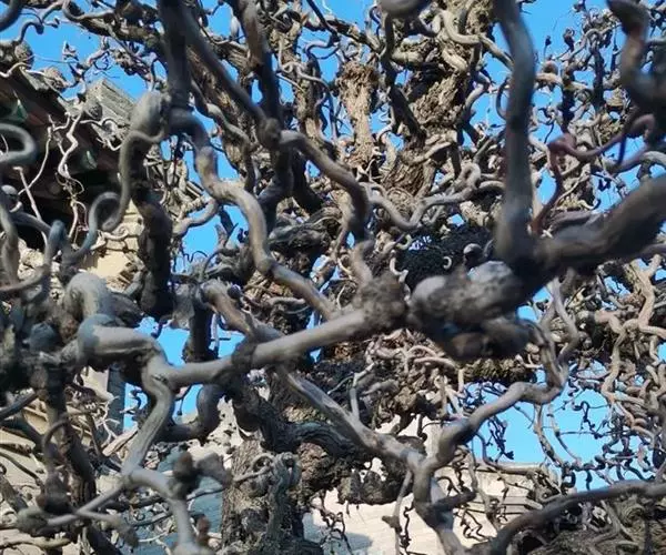 龙爪枣。拉丁名:Ziziphus jujuba Mill. var. jujuba cv. Tortuosa,鼠李科枣属的一种植物。株高10~15m,树皮褐色或灰褐色,枝条呈“之”字形弯曲,迥还盘转,尤如卧龙,具皮刺。叶互生,卵形至卵状披针形,聚伞花序腋生,花黄绿色,花期5~6月。