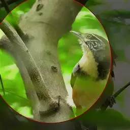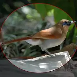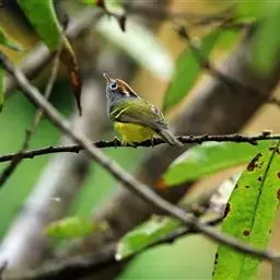 棕脸鹟莺:体长10厘米,是一种色彩亮丽而有特色的莺鸟。头栗色,具黑色侧冠纹。上体绿,腰黄色。下体白,…