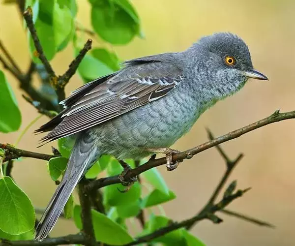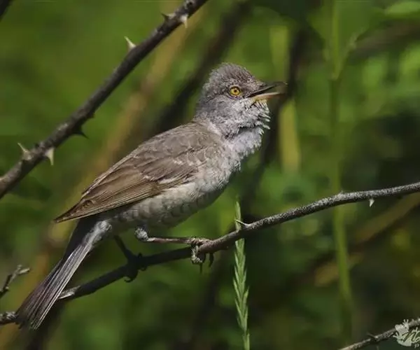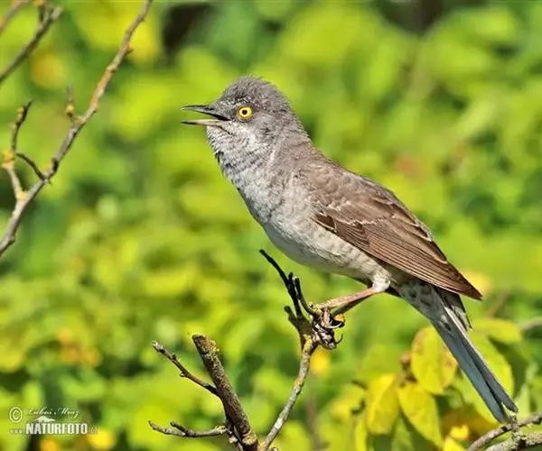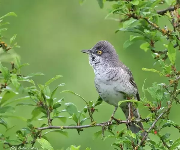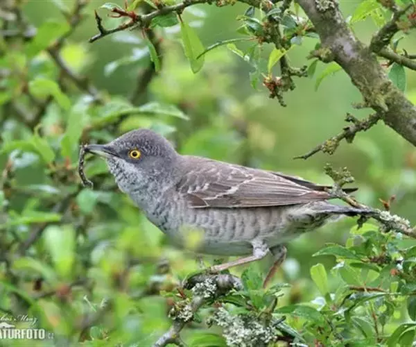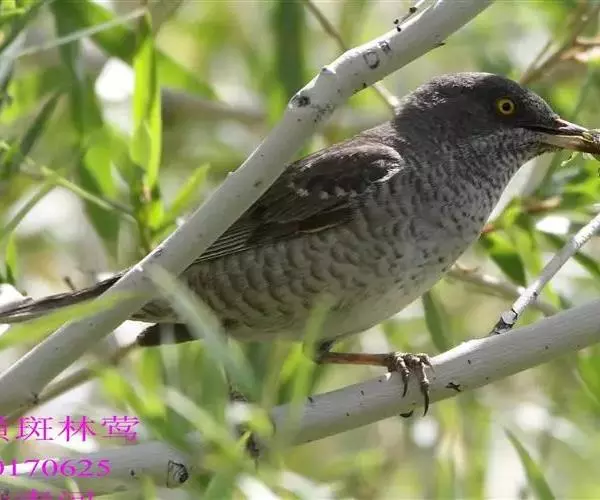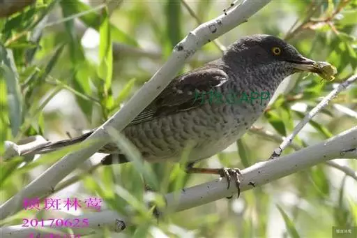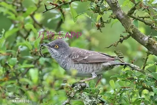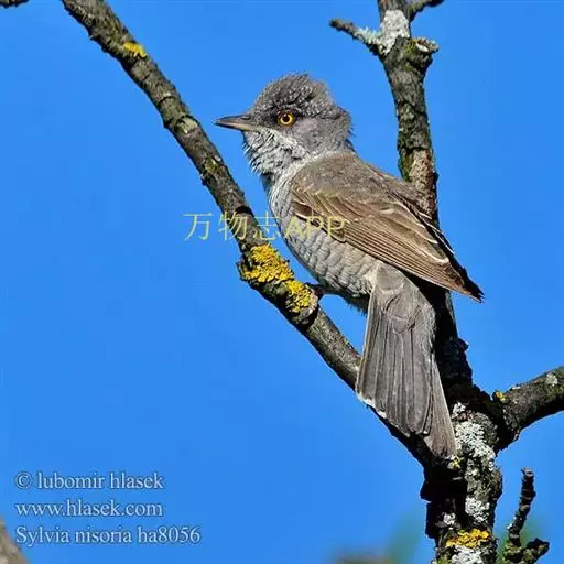 横斑林莺(学名:Sylvia nisoria):体长15-18厘米,是一种绿色及黄色雀鹎。翼上具两道明显近白色横纹,上体橄榄绿色,翼近黑而羽缘白,眼圈黄色,下体黄。雄鸟上体概呈灰褐色,在一定距离看起来有点泛蓝。下体白色,布满暗色波浪形横斑。雌鸟上体呈棕褐色,下体横斑仅限于两胁。一些雄鸟的头部及上背多偏黑色,其他似雌鸟。虹膜灰白色;嘴蓝黑色;脚蓝黑色。