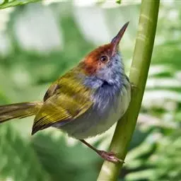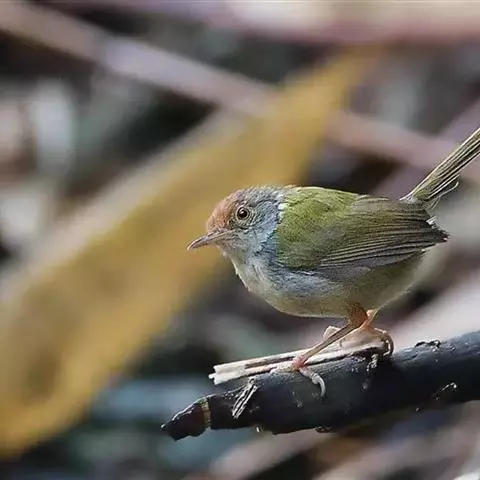 黑喉缝叶莺:体长11.5厘米,是一种小型的顶冠棕色、腹部白色的莺。尾甚长而常上翘,臀黄色,…
