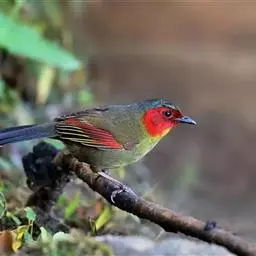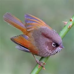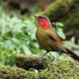 红翅薮鹛是噪眉科、薮鹛属中型鸟类,体长21-24厘米。头顶灰褐色,头侧和颈侧赤红色,上体橄榄褐色,…