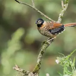 蓝翅噪鹛:噪鹛科、彩翼噪鹛属动物。中型鸟类,体长22-25厘米。上体棕橄榄褐色密被黑色鳞状斑,…