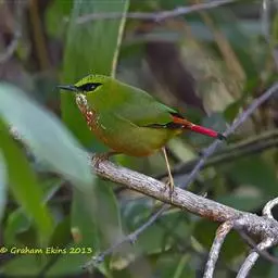 白腹凤鹛是绿鹃科、绿凤鹛属的小型鸟类,体长10-12厘米。上体从头到尾黄绿色,有短的羽冠,…