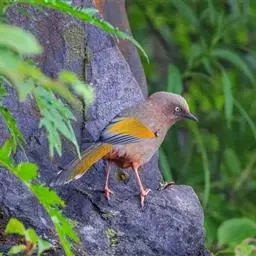 橙翅噪鹛:是噪鹛科、彩翼噪鹛属的中型鸟类,体长22-25厘米。头顶深葡萄灰色或沙褐色。上体灰橄榄褐色,…