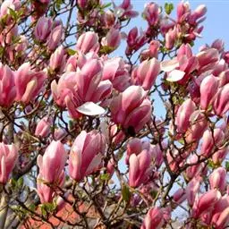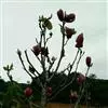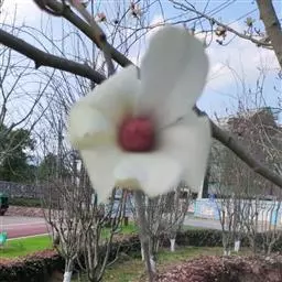 白色的望春玉兰 玉兰树干光滑,枝叶茂密,树形优美,花色素雅,气味浓郁芳香,早春开放,花瓣白色,外面基部紫红色,十分美观,夏季叶大浓绿,有特殊香气,逼驱蚊蝇;仲秋时节,长达20厘米的聚合果,由青变黄红,露出深红色的外种皮,令人喜爱;初冬时报蕾满树十分壮观,为美化环境,绿化庭院的优良树种,它的苗子还是广玉兰、白玉兰和含笑花的砧木。