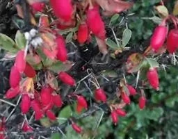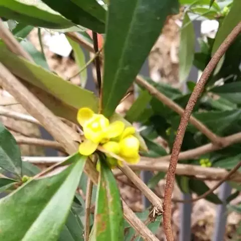 豪猪刺(学名:Berberis julianae Schneid.)是小檗科,小檗属常绿灌木,老枝黄褐色或灰褐色,幼枝淡黄色,茎刺粗壮,三分叉,叶革质,椭圆形,披针形或倒披针形,花簇生,花黄色;小苞片卵形,外萼片卵形,内萼片长圆状椭圆形,花瓣长圆状椭圆形,浆果长圆形,蓝黑色,花期3月,果期5-11月。