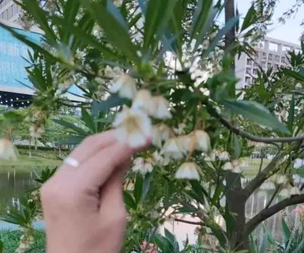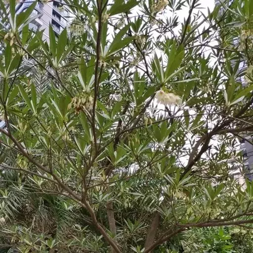 水石榕(学名:Elaeocarpus hainanensis Oliver),又名“水柳树”“海南胆八树”“海南杜英 ”,是杜英科,杜英属下的常绿小乔木。叶革质,聚生于枝顶,狭披针形至倒披针形;总状花序腋生,花白色,倒卵形;核果纺锤形,花期6-7月。