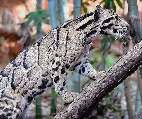 云豹 (学名:Neofelis nebulosa)为哺乳纲的猫科动物,有三个亚种。体长约70-110厘米,尾长约70-90厘米,体重约16-40千克,为豹亚科最小者。身体两侧有6个云状的暗色斑纹,故名。瞳孔长方形,收缩时纺锤形。犬齿锋利,与前臼齿之间的缝隙较大,长度比例在现存猫科动物中最大,能够咬杀较大猎物,此点与史前已灭绝的剑齿虎相似。