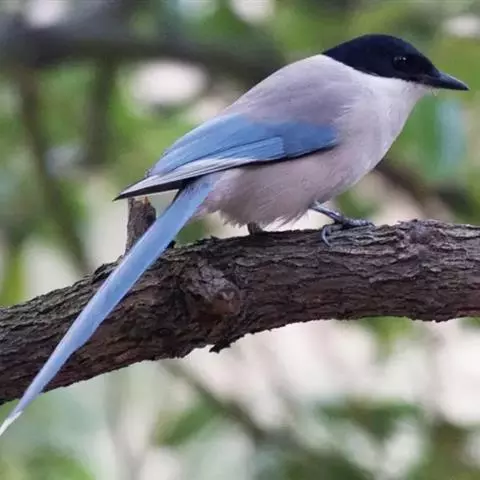 灰喜鹊(学名:Cyanopica cyanus):属雀形目、鸦科的中型鸟类。外形酷似喜鹊,但稍小。体长33-40厘米。嘴、脚黑色,额至后颈黑色,背灰色,两翅和尾灰蓝色,初级飞羽外翈端部白色。尾长、呈凸状具白色端斑,下体灰白色。外侧尾羽较短不及中央尾羽之半。