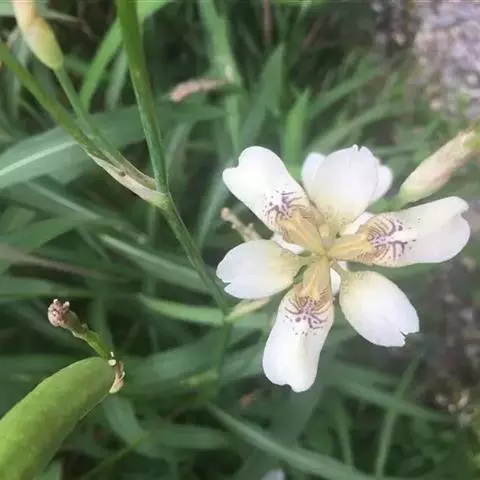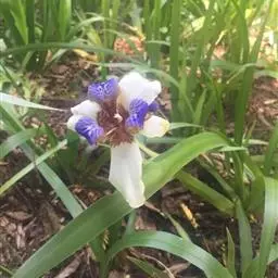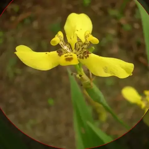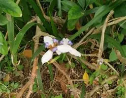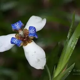 双色野鸢尾为多年生草本植物,叶子呈剑状淡绿色。…