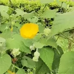 苘麻锦葵科苘麻属一年生亚灌木草本植物。茎秆较高,上面有柔毛;叶子较大且有纹路,浅绿色,边缘不平整,…