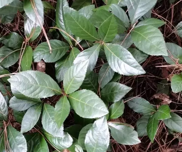 小灌木或亚灌木,近蔓生,具匍匐生根的根茎;直立茎长达30厘米,稀达40厘米,不分枝, 紫金牛(图1) 幼时被细微柔毛,以后无毛。叶对生或近轮生,叶片坚纸质或近革质,椭圆形至椭圆状倒卵形,顶端急尖,基部楔形,长4-7厘米,宽1.5-4厘米,边缘具细锯齿,多少具腺点,两面无毛或有时背面仅中脉被细微柔毛,侧脉5-8对,细脉网状;叶柄长6-10毫米,被微柔毛。