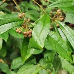 采收 紫金牛在移栽后第3年,直播后第4年的10~11月份采收。采收的原则是采老枝(包括根状茎)留嫩枝(包括根状茎);一般留嫩枝2~3枝。鲜材产量为100kg/亩左右。
