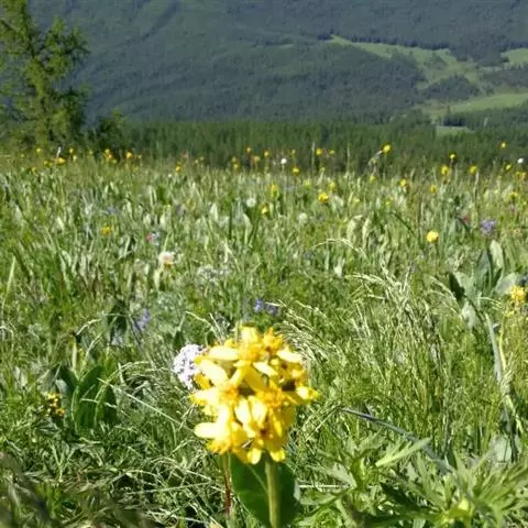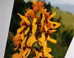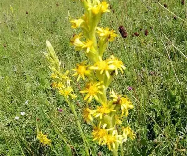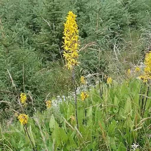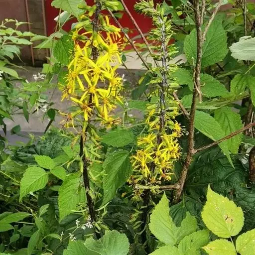 总状花序长4.5-42厘米,常密集;苞片卵形或卵状披针形,下部者长达3厘米,宽0.8-2厘米,向上渐小,全缘或有齿;花序梗长4-12毫米,稀下部者长达8厘米;头状花序多数,辐射状;小苞片狭披针形,全缘,光滑,近膜质;总苞宽钟形、钟形或钟状陀螺形,基部圆形,长7-14毫米,宽6-11毫米,总苞片7-10,2层,披针形或长圆形,宽2-5.5毫米,先端急尖、钝三角形或渐尖,背部光滑,边缘膜质,有时紫红色。舌状花6-10,黄色,舌片倒披针形或长圆形,长10-22毫米,宽3-5毫米,先端钝,管部长5-10毫米;管状花多数,长8-13毫米,管部长4-7毫米,几冠毛白色与花冠等长。瘦果长圆形,长达10毫米,光滑。花果期7-10月。