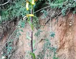 多年生草本。根肉质,细而多。茎直立,高52-110厘米,最上部及花序被白色蛛丝状毛和黄褐色有节短柔毛,下部光滑,基部直径2.5-11毫米,被枯叶柄纤维包围。