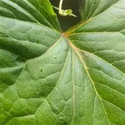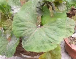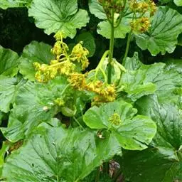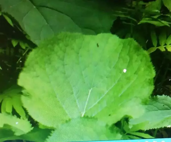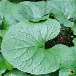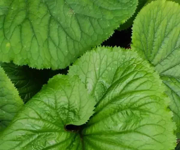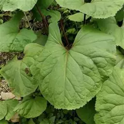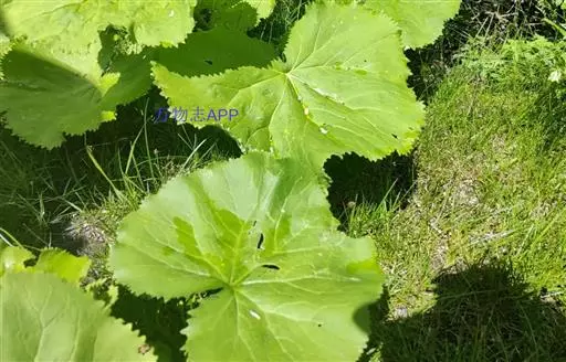 丛生叶和茎下部叶具柄,柄长14-39厘米,光滑,基部鞘状,叶片卵状心形、三角状心形、肾状心形或宽心形,长3.5-2 0厘米,宽4.5-29厘米,先端圆形或钝,边缘具整齐的细齿,基部心形,弯缺长为叶片的1/3至1/4,两侧裂片长圆形或近圆形,有时具大齿,两面光滑,叶脉掌状;茎中部叶与下部者同形,具短柄,柄长3-14厘米,鞘膨大,长3-6厘米;最上部叶仅有叶鞘,鞘缘有时具齿。