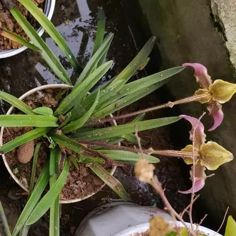 上盆(或翻盆)时间一般在春季3-4月或秋季10-11月。花盆以口小、盆深、底孔大的为佳。新从山上挖来的野生苗需理植于瓦盆(泥盆)中,这样兰花泥易干,通气性好.容易发根;2-3年后方可换人紫砂盆或瓷盆。兰花种植(在盆中)的方法与一般花卉不同,尤其是名种兰花,翻种移盆必须洗根。方法足将根浸入清水中,用旧牙刷或毛笔轻轻洗刷,切勿用力过大伤根;用剪刀将残叶、黄叶、断裂根、发黑腐烂根剪去,注意勿伤幼芽。然后将处理好的植株放在阴凉通风处晾干,待根部发白并显细小皱纹柔软时,再植入盆中。