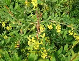 日本小檗是小檗科小檗属的落叶灌木植物,株高可达1.5-2.0米。枝暗紫色,有条棱,小枝淡红褐色,…
