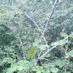 虽然山莓中除黑山莓品种外均为直立型,但由于山莓枝条通常只生长2年,比较细,当枝条长到1.5米时易成弓形而触地,特别是在结果期更是如此,所以山莓在生长期间要搭架缚引。搭架缚引非常简便,在行内每隔5-10米立一支柱,高1.2-1.5米,并拉两道铁丝线,上层铁丝固定在支柱顶端,下层铁丝距地1米,将枝条扇形引缚到铁丝上即可。