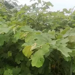 ③适应性强,植株长势强壮,抗寒,抗病虫害。以棚架矮化栽培,株距80-120厘米,三角形定植,行距200-250厘米。每667平方米栽植株数约500-600株,进入结果期,每667平方米结果株数约1800-2000株。