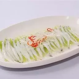 4、切薄片,放1勺盐搅拌匀。