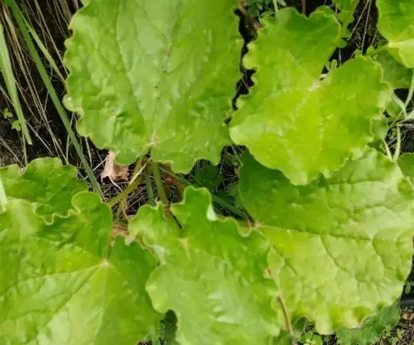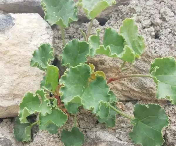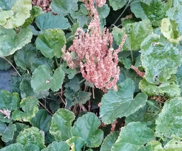 多年生草本,高30-50厘米。根状茎粗壮,木质,直径0.7-2厘米。茎直立,通常数条,自根状茎发出,具深纵沟,密生短硬毛。无基生叶,茎生叶叶片圆心形或肾形,长3-4厘米,宽4-5厘米,近肉质,顶端圆钝,基部宽心形,边缘呈波状,上面无毛,下面沿叶脉疏生短硬毛,具5条基出脉;叶柄粗壮,长4-9厘米,密生短硬毛;托叶鞘膜质,筒状,松散,具数条纵脉。