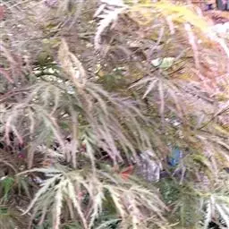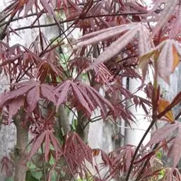 鸡爪槭 加工:鸡爪槭多用攀扎与修剪相结合进行造型。攀扎宜用棕丝,并须及时拆除,否则很易陷丝。若用金属丝攀扎,则更须防止陷丝。攀扎加工宜在梅雨期或落叶后进行。鸡爪槭的大枝可以攀扎,小枝则宜修剪,一般将每一枝条留1-2节,前端剪去,使生出的两根侧枝成丫型,以后再如此依次修剪,最后形成树冠。