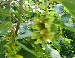 小坚果球形,直径7毫米,脉纹显著;翅与小坚果共长2-2.5厘米,宽1厘米,张开成钝角。花期5月,果期9月。