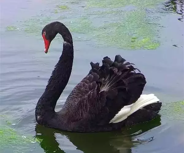 黑天鹅(学名:Cygnus atratus):是鸭科天鹅属的一种大型游禽,体长110-140厘米;翼展160-200厘米;体重3.7-8.75千克。具有天鹅种类中最长的脖子。这个细长的脖子通常呈“S”形拱起或直立。全身羽毛卷曲,体羽斑点闪烁,主要呈黑灰色或黑褐色,腹部为灰白色,飞羽为白色。尾长而分叉,外侧羽端钝而上翘形似竖琴。有一个明亮的蜡质的鸟喙,为红色或橘红色,靠近端部有一条白色横纹。虹膜为红色或白色,跗跖和蹼为黑色。共有2个亚种,指名亚种嘴较厚重。