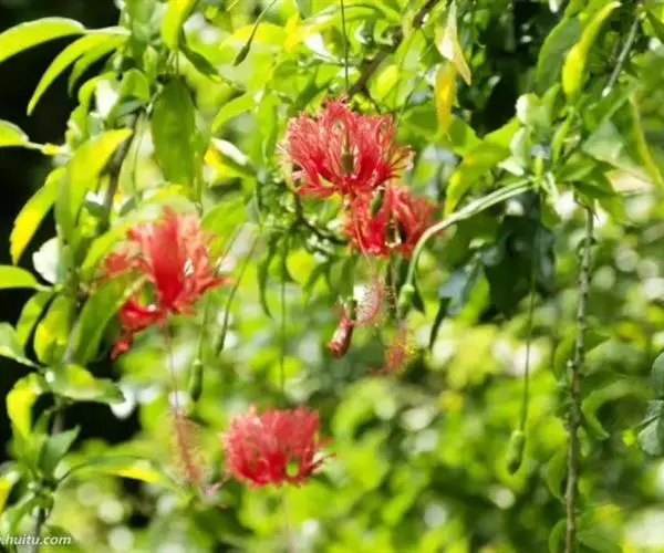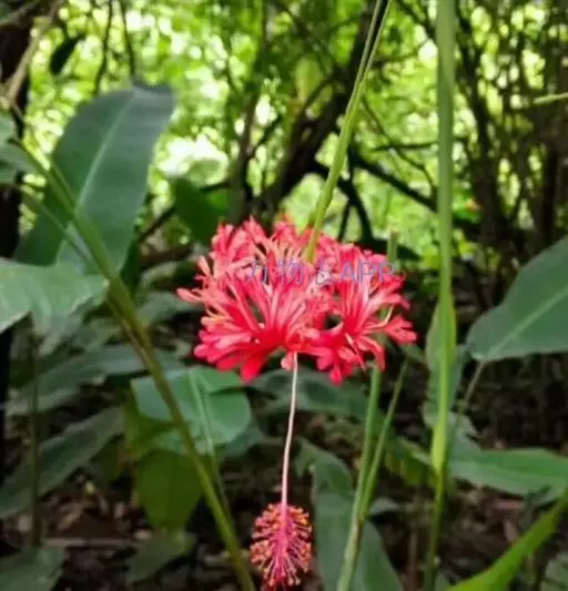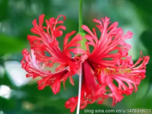 吊灯扶桑,又名假西藏红花、灯笼花。常绿直立灌木,高达3m。小枝细瘦,常下垂,平滑无毛。叶互生;叶柄长1-2cm,上面被星状柔毛;托叶钻形,长约2mm,常早落;叶片椭圆形或长圆形,长4-7cm,宽1.5-4cm,先端短尖或短渐尖,基部钝或宽楔形,边缘具齿缺,两面均无毛。花单生于枝端叶腋间,花梗细瘦,下垂,长8-14cm,平滑无毛或具纤毛,中部具节;小苞片5,极小,披针形,长1-2mm,被纤毛;花萼管状,长约1.5cm,疏被细毛,具5浅齿裂,常一边开裂;花瓣5,红色,长约5cm,深细裂作流苏状,向上反曲;雄蕊柱长而突出,下垂,长9-10cm,无毛;花柱枝5,无毛。蒴果长圆柱形,长约4cm,直径约1cm。花期全年。