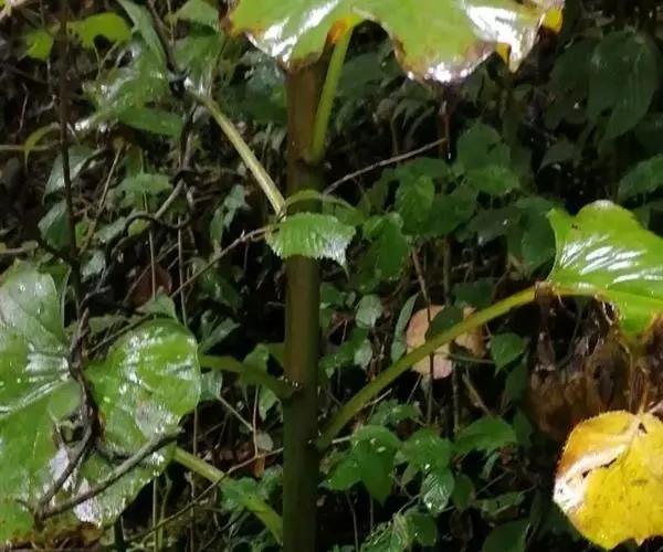 叶纸质,网状脉;基生叶卵状心形或近宽矩圆状心形,茎生叶卵状心形,下面的长15-20厘米,宽12-15厘米,叶柄长15-20厘米,向上渐小,靠近花序的几枚为船形。