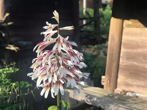 总状花序有花10-16朵,无苞片;花狭喇叭形,白色,里面具淡紫红色条纹;花被片条状倒披针形,长12-15厘米,宽1.5-2厘米;雄蕊长6.5-7.5厘米,长约为花被片的1/2;花丝向下渐扩大,扁平;花药长椭圆形,长约8毫米,宽约2毫米;子房圆柱形,长2.5-3厘米,宽4-5毫米;花柱长5-6厘米,柱头膨大,微3裂。蒴果近球形,长3.5-4厘米,宽3.5-4厘米,顶端有1小尖突,基部有粗短果柄,红褐色,具6钝棱和多数细横纹,3瓣裂。种子呈扁钝三角形,红棕色,长4-5毫米,宽2-3毫米,周围具淡红棕色半透明的膜质翅。花期6-7月,果期9-10月。 [2-3]