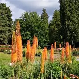 火炬花 Oken)是阿福花科、火把莲属多年生草本植物。株高可达120厘米,茎直立。叶丛生、草质、剑形。…