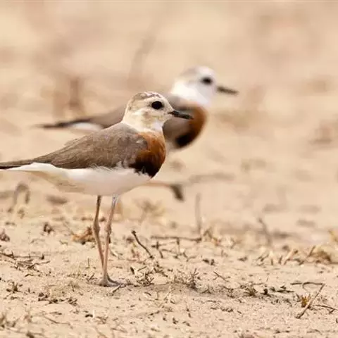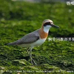 东方鸻:属小型涉禽。体重80-95克,体长220-255毫米。在夏季,前额、眉纹和头的两侧白色,头…