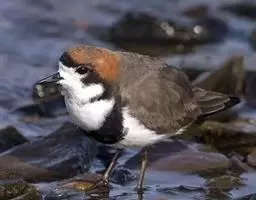 灰头麦鸡是鸻形目鸻科麦鸡属鸟类,繁殖期头、颈及胸灰色;胸部和腹部之间有黑色胸带分隔;背部及两翼大部分覆羽褐色;腹部和腰部白色;尾羽基部及边缘白色,近末端有黑色斑块。非繁殖期头颈部染褐色,颏及喉部白色,胸带不明显。初级飞羽黑色,其余飞羽及与之相邻的部分覆羽白色;虹膜红褐色,眼圈黄色;嘴尖段黑色,后段黄色;腿和脚黄色。灰头麦鸡分布于欧亚大陆及非洲北部、中南半岛以及太平洋诸岛屿,在中国分布于东南沿海地区。栖息于丘陵、平原地区河流、湖泊和沼泽等水体附近。繁殖期成对活动,其余时间集群活动。主要啄食甲虫、蝗虫、蚱蜢等昆虫,也吃水蛭、螺、蚯蚓、软体动物和植物叶片及种子。繁殖期为5—7月,1年繁殖1窝,每窝产卵4枚。灰头麦鸡被列入中国国家林业局发布的《国家保护的有益的或者有重要经济、科学研究价值的陆生野生动物名录》。