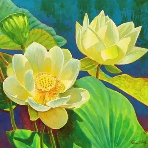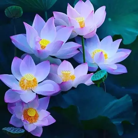 兴盛时期:唐宋时期社会安定,推动了造园活动的进行。再加上此时期的诗文绘画对莲推崇备至,更加促使元、明、清时期大兴赏莲之风,从而使莲品种的选育由听任自然变为自觉行为,各地培育的新品种层出不穷,如金边的白色莲花、大株型单瓣类和重瓣类的黄莲花。此外,王晋象的《群芳谱》还载有花瓣上洒有黄色斑点的“洒金”莲和瓣周有微条黄色线的“金边”莲等复色品种(后湮没)。此期间江南一带的育种目标主要侧重对小株型品种的培育,获得了“花大若钱”的微型莲花。清代杨钟宝《缸荷谱》是我第一部莲专著,记载了33个品种,其中小株型莲品种即达13个,且包括黄色珍品“蜜钵”(后烟没)。