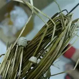 大型草本。叶丛生,线形,长10-37厘米,宽4-13毫米,先端钝,叶质较厚,对光能见横格,脉15-37条。花葶5-20,长可达60厘米,干时粗1.1毫米,扭转,具4-6棱,鞘状苞片长4-12厘米,口部斜裂,裂片禾叶状;花序熟时近球形,不压扁,灰白色,直径6.5毫米,基部平截;总苞片倒卵形,禾秆色,平展,硬膜质,直径2.2-2.4毫米,背面有白短毛,下部的长,由3个细胞接成,上部的为单细胞短毛,边缘无毛;总(花)托无毛;苞片倒卵形至倒卵状楔形,径2-2.5毫米,背上部有白短毛;雄花:花萼合生,佛焰苞状,近轴处深裂至半裂,顶端3(-2)浅裂,有时顶端平截不见分裂,两侧片具翅,翅端为不整齐齿状,无毛;花冠3裂,裂片条形,常各有1不明显的腺体,裂片顶端有短毛;雄蕊6枚,偶见5或4枚;花药黑色;雌花:萼片3枚,偶2,无毛,侧片2,舟形,长2-2.3毫米,背面有宽翅,翅端齿状,中萼片(近轴萼片)较小,无翅,长1.7-0-25毫米,线形、圆形至二叉状,甚至完全退化;花瓣3枚,膜质,线形,中片(远轴瓣)稍大,近顶处各有1淡棕色、不明显的腺体,顶端有白短毛,中下部侧面有时有长柔毛;子房3室,花柱分枝3,花柱扁。种子卵形,长0.58-0.7毫米,表面具横格及T字形毛。花果期夏秋至冬季。