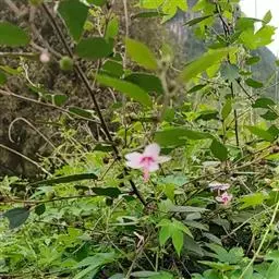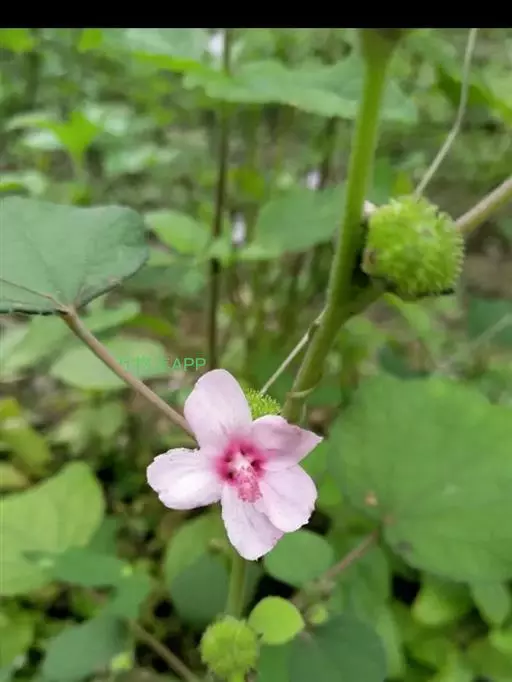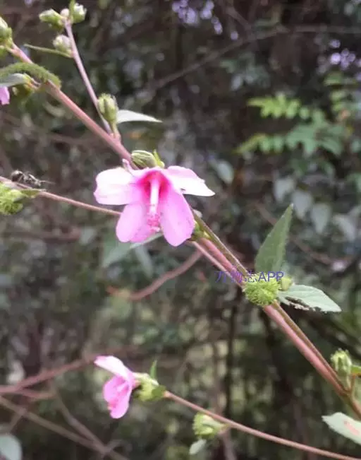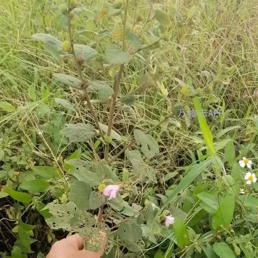 1、地桃花:又名肖梵天花。直立亚灌木状草本,高达1m。小枝被星状绒毛。叶互生;叶柄长1-4cm,被灰白色星状毛;托叶线形,长约2mm,早落;茎下部的叶近圆形,长4-5cm,宽5-6cm,先端浅3裂,基部圆形或近心形,边缘具锯齿;中部的叶卵形,长5-7cm,宽3-6.5cm;上部的叶长圆形至披针形,长4-7cm,宽1.5-3cm;叶上面被柔毛,下面被灰白色星状绒毛。花腋生,单生或稍丛生,淡红色,直径约15mm;花梗长约3mm,被绵毛;小苞片5,长约6mm,基部合生;花萼杯状,裂片5,较小苞片略短,两者均被星状柔毛;花瓣5,倒卵形,长约15mm,外面被星状柔毛;雄蕊柱长约15mm,无毛;花柱枝10,微被长硬毛。果扁球形,直径约1cm,分果爿被星状短柔毛和锚状刺。花期7-10月。