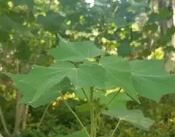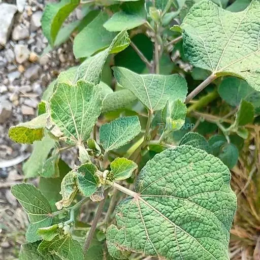 药材性状:干燥根呈圆柱形,略弯曲,支根少数,上生多数须根,表面淡黄色,具纵皱纹;质硬,断面呈破裂状。茎灰绿色至暗绿色,具粗浅的纵纹,密被星状毛和柔毛,上部嫩枝具数条纵棱;质硬,木部断面不平坦,皮部富纤维,难以折断。叶多破碎,完整者多卷曲,上表面深绿色,下表面粉绿色,密被短柔毛和星状毛,掌状网脉,下面突出,叶腋有宿存的托叶。气微,味淡。