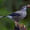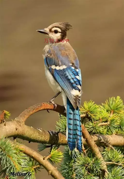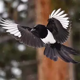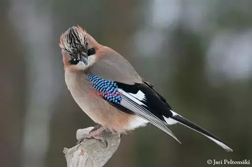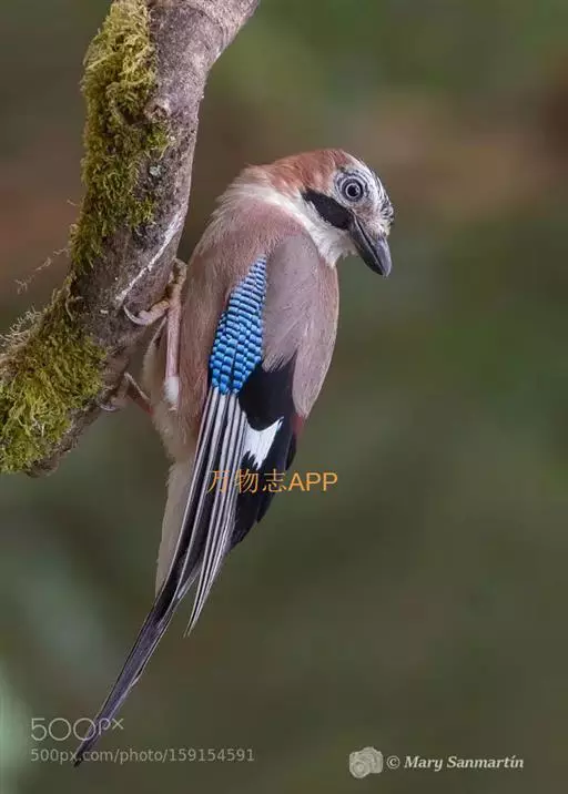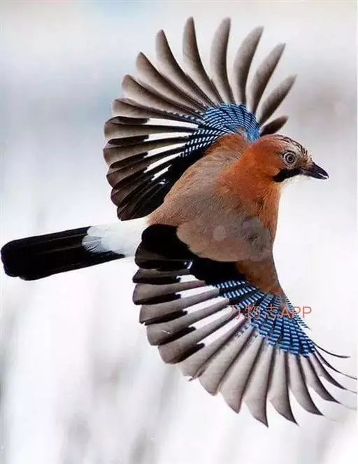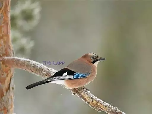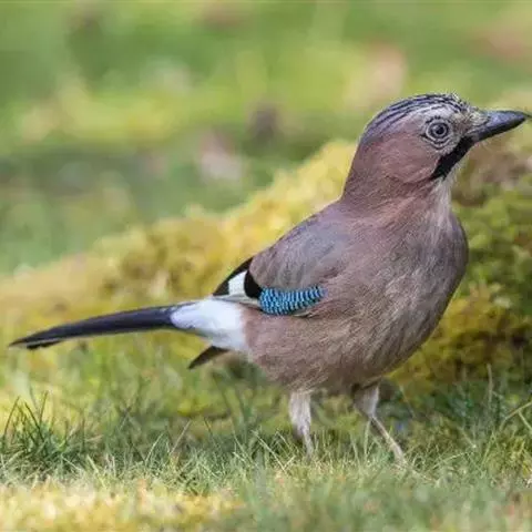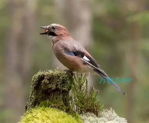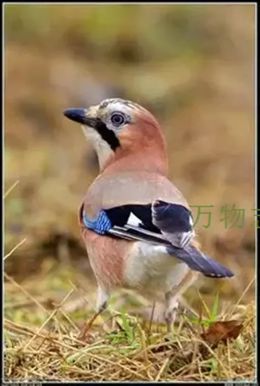 松鸦(学名:Garrulus glandarius):是中型鸟类,共有34个亚种。体长28-35厘米。翅短,尾长,羽毛蓬松呈绒毛状。头顶有羽冠,遇刺激时能够竖直起来。羽色随亚种而不同,云南亚种额白,头顶黑色。其余亚种额和头顶红褐色,口角至喉侧有一粗著的黑色颊纹。上体葡萄棕色,尾上覆羽白色,尾和翅黑色,翅上有辉亮的黑、白、蓝三色相间的横斑,极为醒目。