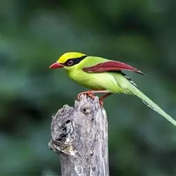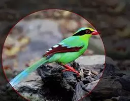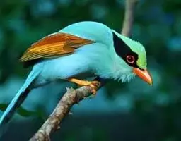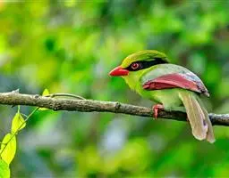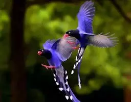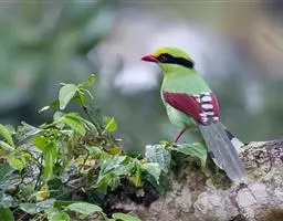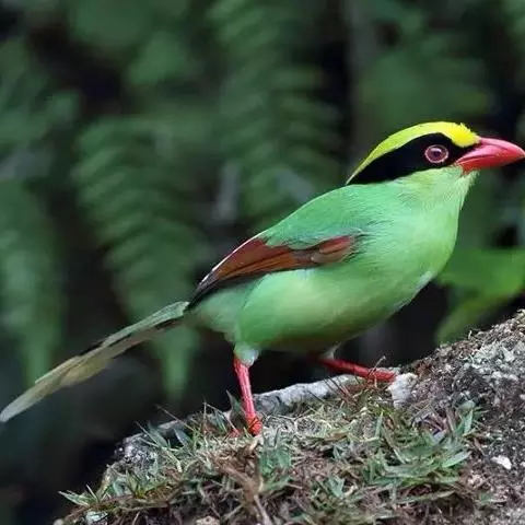蓝绿鹊:中型鸟类,共有5个亚种。体长36-38厘米。尾长,嘴、脚红色。通体羽色主要为草绿色,…