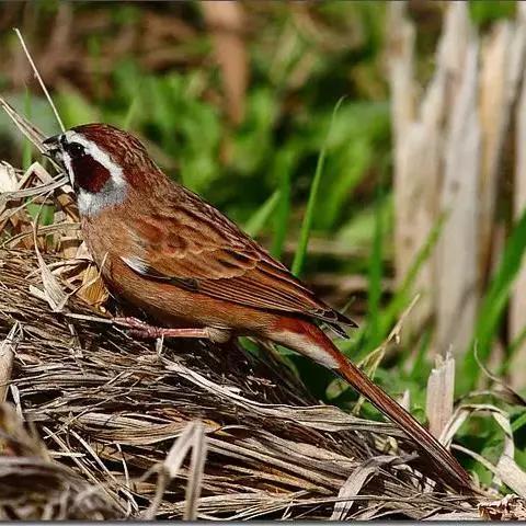 栗斑腹鹀:属小型鸣禽。体重19-25克,体长145-167毫米。头顶至背栗红色,眼先和颧纹黑褐色,…
