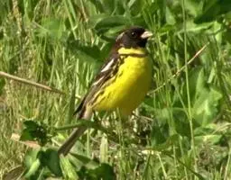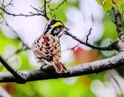 黄眉鹀是雀形目鹀科鹀属鸟类,体型中等偏小。雄鸟头部主要为黑色,冠纹白色,眉纹前段黄色而后段白色,…