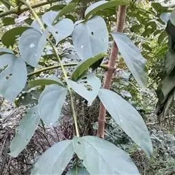 蔓九节是茜草科九节属的攀援或匍匐藤本植物。常以气根攀附树干或岩石;幼枝无毛或有粃糠状柔毛;幼树叶卵形或倒卵形,托叶膜质;圆锥状或伞房状聚伞花序顶生,苞片和小苞片线状披针形,花萼倒圆锥形,花冠白色,冠筒与裂片近等长,裂片长圆形;浆果状核果球形或椭圆形;花期4-6月;果期全年。因叶片紧贴着树干往上生长,宛如一条青龙上树,故又名“上树龙”。蔓九节分布在中国浙江、福建、台湾等省地,在日本、朝鲜、越南等国也有分布,生长在海拔70-1360米的平地、丘陵、山地、山谷水旁的灌丛或林中。喜温暖湿润,不耐寒,耐荫,适宜选用排水良好、富含有机质的砂质土壤。蔓九节在《世界自然保护联盟濒危物种红色名录》中属于无危。繁殖方法一般为扦插、压条、播种繁殖。据《福建药物志》中记载蔓九节“有祛风除湿,舒筋活络的功效。主治风湿关节痛,头风痛,手足麻木坐骨神经痛,腰肌劳损,