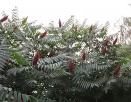 火炬树是漆树科盐麸木属落叶灌木或小乔木;株高,树形不整齐;小枝粗壮,红褐色,密生绒毛;叶轴无翅,…