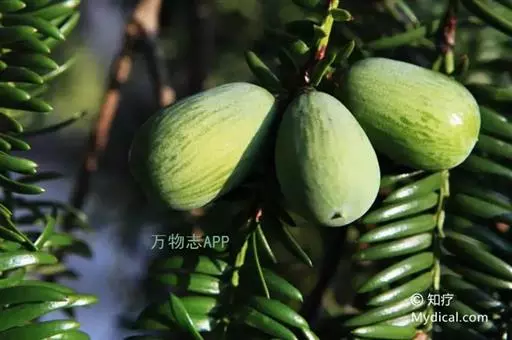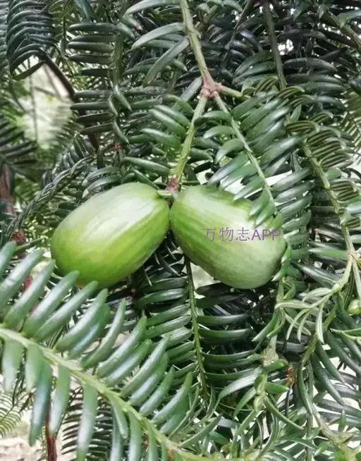 高达20米,干基高30-60厘米,径达1米,其上有3-4个斜上伸展的树干;小枝下垂,一、二年生小枝绿色,三年生枝呈绿紫色或紫色;叶深绿色,质较软;种子连肉质假种皮宽矩圆形或倒卵圆形,长3-4厘米,径1.5-2.5厘米,有白粉,干后暗紫色,有光泽,顶端具短尖头;种子矩圆状倒卵形或圆柱形,长2.7-3.2厘米,径1-1.6厘米,微有纵浅凹槽,基部尖,胚乳微内皱。产于浙江诸暨枫桥、西黄三坑海拔约600米之山坡栽培颇多,有百龄以上结实力仍未衰退的大树;东阳十里坡也有栽培。