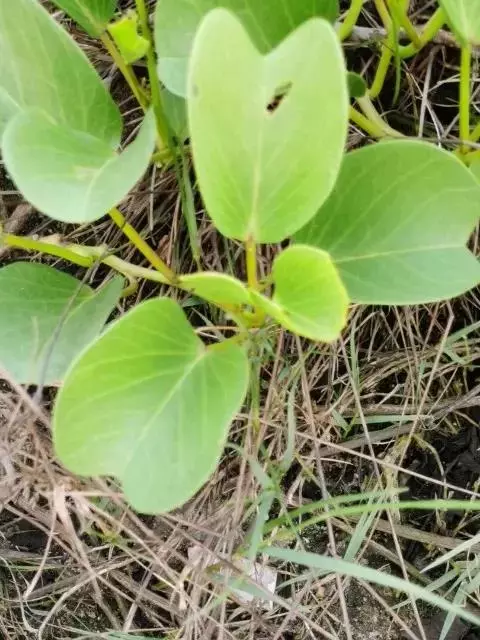 番薯 Lam.),多年生草质藤本植物,具有乳汁;其块根为白、红或黄色;茎生不定根;叶呈宽卵形或卵状心形,叶色有浓绿、黄绿、紫绿等,前端渐尖,基部呈心形或近平截;花冠为粉红、白、淡紫或紫色,呈钟状或漏斗状,无毛;蒴果呈卵形或扁圆形;由于番薯是于异花授粉,自花授粉常不结实,所以有时只见开花不见结果。 种子1-4粒,通常2粒,无毛。番薯原产于南美洲及大、小安的列斯群岛,现已广泛栽培在全世界的热带、亚热带地区,但在一些较北的地区如黑龙江省也已栽种成功,中国大多数地区都普遍栽培。番薯适应性强,喜温暖多光而不耐霜冻,抗旱耐碱,适种于肥沃而排水良好的砂质壤土,是一种易于保收的作物。番薯是一种高产而适应性强的粮食作物,在中国南方,有“一造番薯半年粮”的说法, 与工农业生产和人民生活关系密切;块根除作主粮外,也是食品加工、淀粉和酒精制造工业的重要原料;根、茎、叶可作