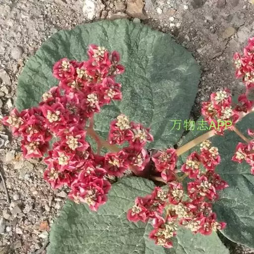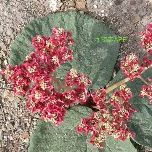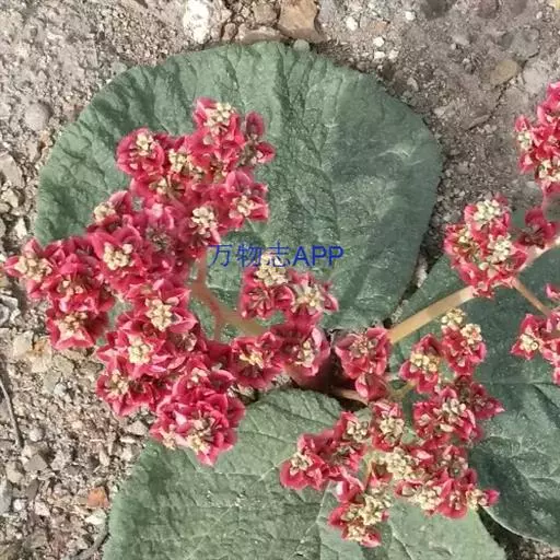 基生叶2--4片,叶片革质,肾状圆形或近圆形,长6 14厘米,宽8-16厘米,稀更大,顶端阔圆,基部圆形或极浅心形,近全缘呀略不整齐,叶脉掌状,基出脉3-5条,叶上面黄绿色,具白色优状突起,下面色较浅,无毛;叶柄短粗,长2-4.5厘米,直径7-9毫米,具细沟棱,光滑无毛。