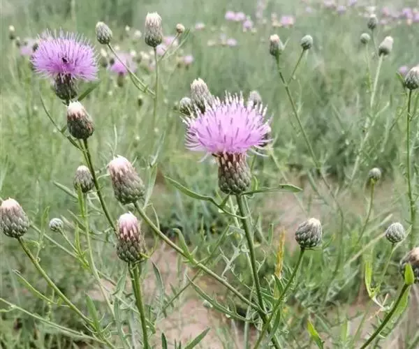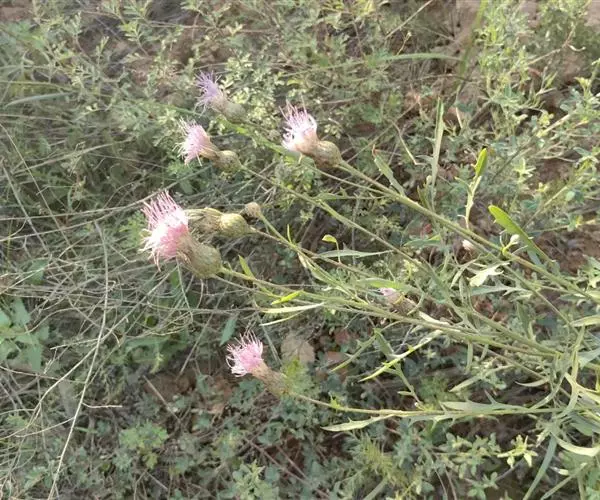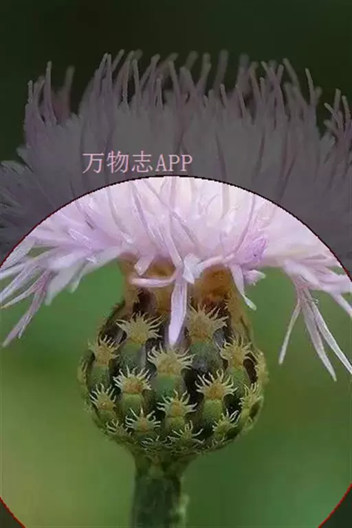 多年生草本,高40-100厘米。根状茎横走,黑褐色。茎直立,上部少分枝或不分枝,中部以下被稀疏的或稠密的节毛,基部被残存的纤维状撕裂的叶柄。基生叶及下部茎叶长椭圆形,长8-12厘米,宽2-5厘米,羽状深裂,有长3-9厘米的叶柄;侧裂片5-8对,全部裂片长椭圆形至宽线形,全缘或有锯齿或少锯齿,宽0.4-0.8(1.3)厘米,顶端急尖;中部茎叶与基生叶及下部茎叶同形,并等样分裂,但无柄或有极短的柄,裂片全缘无锯齿或少锯齿;上部的叶更小,5-7羽状全缘,裂片全缘,无锯齿,或不裂,线形,边缘无锯齿。全部叶两面粗糙,两面被多细胞长或短节毛。头状花序少数,单生茎枝顶端,但不形成明显的伞房花序式排列,或植株含1个头状花序,单生茎端,花序梗或花序枝伸长,几裸露,无叶。总苞卵形或长卵形,直径1.5-2厘米,上部有收缢或稍见收溢。总苞片10-12层,覆瓦状排列,向内层渐长,外层与中层三角形、三角状卵形至卵状披针形,长4.5-8.5毫米,宽3-3.5毫米,顶端急尖,有长2.5毫米的短针刺或刺尖;内层及最内层椭圆形、披针形或长椭圆形至线形,长1-2厘米,宽1-4毫米,最内层最长,上部淡黄白色,硬膜质。全部小花红色,红紫色或白色,花冠长2.1厘米,细管部长9毫米,檐部长1.2厘米,花冠裂片长7毫米。瘦果楔状长椭圆形,褐色,有4条高起的肋棱,长5毫米,宽2毫米。冠毛褐色或略带土红色,长达7毫米。冠毛刚毛糙毛状,分散脱落。花果期6-9月。 [1-2]